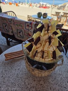 Para acompanhar, os drinks autorais que nos surpreenderam. O Boho Chic é uma obra de arte visual: vodka Absolut infusionada com flor de clitoria, que confere um tom azulado e um leve toque picante, harmonizado com um cordial de limão siciliano e tônica. Uma bebida leve, refrescante e perfeitamente equilibrada para o clima de praia. O Quintana Roo, inspirado nas praias mexicanas, traz a tequila prata, sour de jabuticaba com pimenta jamaica, e três gotas de ácido de champanhe com clara de ovo, resultando em um drink doce, elegante e com corpo marcante.