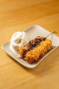 Para adoçar, o Kushi Toast (R$ 26,00), french toast no espeto com sorvete e chocolate, e o Ice Choux Cream (R$ 26,00), massa choux com sorvete e chantilly, encerraram a noite com perfeição.