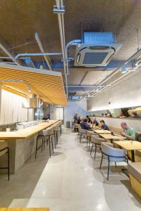 A arquitetura de Hayato Fujii, responsável também pela Japan House, traduz a essência da marca: difundir a cultura japonesa no Brasil. O cardápio foi criado pelo chef Daisuke Takao, que em um ano e meio de consultoria desenvolveu receitas de frituras, molhos e técnicas mantidas até hoje pela equipe da cozinha.