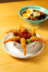 Nossa experiência começou com o Mini Ebi Furai Coquetel (R$ 34,00), camarões empanados com molho de tomate e wasabi, e o Buta no Kakuni (R$ 40,00), panceta cozida lentamente, macia e saborosa.