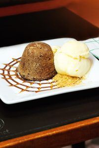 Nas sobremesas, o Petit Gâteau chega quente e cremoso, contrastando com o gelato de creme, enquanto o Pudim surpreende pela combinação com doce de leite salgado e tuile de coco — releituras que equilibram tradição e modernidade.